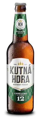Světlý ležák z Kutnohorského pivovaru balený ve skle.