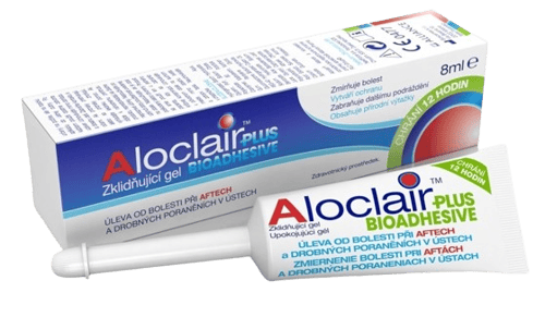 Zdravotnický prostředek Aloclair® Plus bioadhezivní zklidňující gel působí mechanicky (vytváří bariéru) a je určený ke zvládání příznaků způsobených afty, ústní stomatitidou, vřídky v ústech, podrážděním ústní dutiny a drobnými poraněními ústní dutiny způsobených rovnátky a zubními protézami. Jeho působení vede k úlevě od bolesti tím, že přilne k povrchu ústní sliznice, zklidňuje léze v ústech, omezuje bolest a nepohodlí. Gelová konzistence ve spojení se speciálním aplikátorem je zvláště indikována pro zřetelně viditelné a identifikované léze. Aloclair PLUS BIOADHESIVE zklidňující gel obsahuje složky s vysokou filmotvornou schopností a je vysoce mukoadhezivní - vytváří ochranný film jako bariéru (nebo štít), který přetrvává déle než 12 hodin. Díky svému ochrannému působení pomáhá při zvládání fyziologických procesů hojení a minimalizuje riziko dalšího dráždění. Aloclair® Plus bioadhezivní zklidňující gel je vhodný pro děti od 4 let. Balení obsahuje 8 ml gelu.
