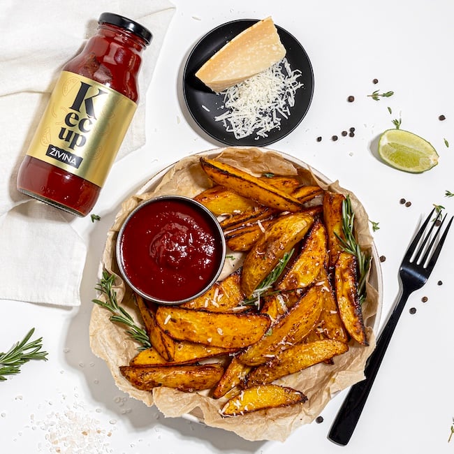 Kečup Živina je poctivá omáčka ze zralých rajčat z jihomoravských polí. Rajčata ze ZP Mikulčice jsou sklízena v létě, kdy mají nejvíc chuti i barvy. Kečup má jemně sladko-kyselý profil, který je o něco výraznější než u běžných kečupů. Neobsahuje škrob, barviva ani jiné přidané látky.