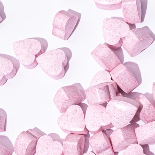 Obsah v 1 tabletě/srdíčku: sorbitol (plnidlo, náhradní sladidlo), L-Askorbová kyselina (vitamín C) 120 mg (150 % RHP*), Glukonát zinečnatý (zinek) 5 mg (50 % RHP*), Brusinkový koncentrát (Vaccinium macrocarpon), D,L-α-Tokoferol acetát 50% (vitamín E) 6 mg (50 % RHP*), Nikotinamid (vitamín B3) 16 mg (100 % RHP*), hořečnaté soli mastných kyselin (protispékavá látka), přírodní malinové aroma, Retinol palmitát 250 000 I.U./g (vitamín A) 800 mcg (100 % RHP*), D-Panthothenát vápenatý (vitamín B5) 9 mg (150 % RHP*), sukralóza (náhradní sladidlo), přírodní citrónové aroma, Cholekalciferol 100 000 I.U./g (vitamín D3) 5 mcg (100 % RHP*), Pyridoxin hydrochlorid (vitamín B6) 0,70 mg (50 % RHP*), Seleničitan sodný (selen) 27,50 mcg (50 % RHP*), D-Biotin (vitamín H) 25 mcg (50 % RHP*). * RHP - Referenční hodnota příjmu