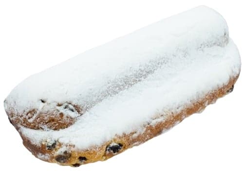 Tradiční vánoční štola s marcipánovou náplní, máslem a mandlemi. Je pečená podle německé receptury. Jemné sladké pečivo plné rozinek a kandovaného ovoce. Na povrchu je štola posypána cukrem.