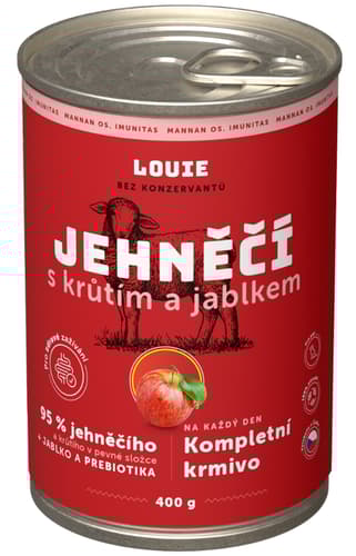 Louie Kompletní krmivo jehněčí s krůtím a jablkem pro psy400 gTento produkt již není v nabídce.Země původu: dle aktuální nabídkypro přesnou informaci kontaktujte zákaznickou podporu