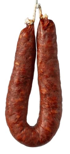 Garantovaná minimální trvanlivost tohoto produktu od doručení nákupu: 15 dní.Pokud by minimální trvanlivost tohoto zboží byla ve vašem nákupu menší, kontaktujte nás a my vám vrátíme zaplacenou cenu zboží v kreditech. Nevztahuje se na zboží ze sekce Zachraň jídlo.Vepřové maso a tuk, sůl, dextrin, dextróza, přírodní aroma, koření (černý pepř, bílý pepř)