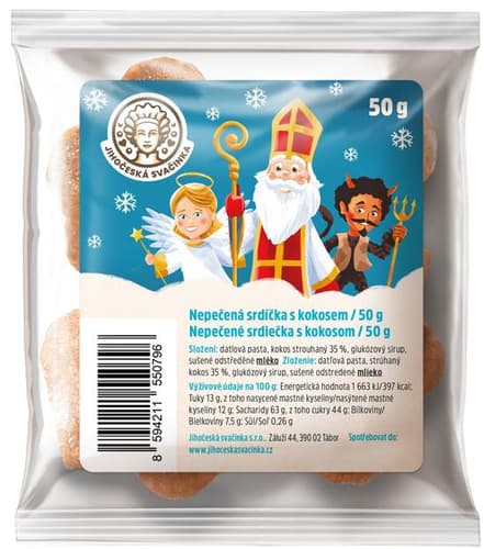 Snack ve tvaru srdíček z lisovaného ovoce s příchutí kokosu. Nepečená srdíčka z datlové pasty a kokosu jsou bezlepková, měkká, šťavnaté a plná ovoce. Sušenky čeká několikahodinová práce cukrářek Jany, Petry a Katky, během které se neustále kontroluje vysoká řemeslná kvalita výrobků.