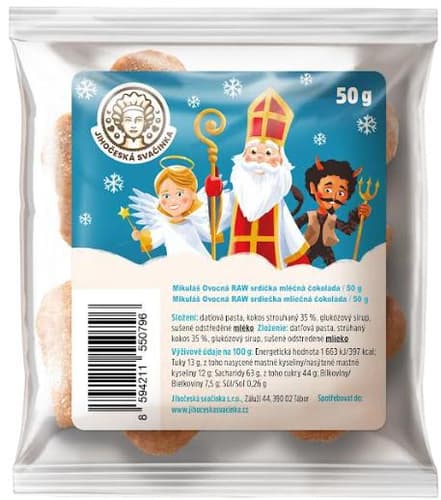 Jihočeská svačinka Ovocná nepečená srdíčka mléčná čokoláda