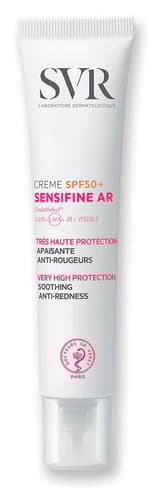SVR Sensifine AR krém SPF50+ je francouzský pleťový krém s velmi vysokou ochranou proti slunci, ideální pro citlivou pleť náchylnou k zarudnutí. Obsahuje Endothelyol pro snížení zarudnutí a extrakt z lékořice pro zklidnění. Má nemastnou, bezbarvou texturu, nezanechává bílé stopy a je hypoalergenní a bez parfemace. Klinicky prokázaná účinnost pro okamžitý komfort. Balení 40 ml.
