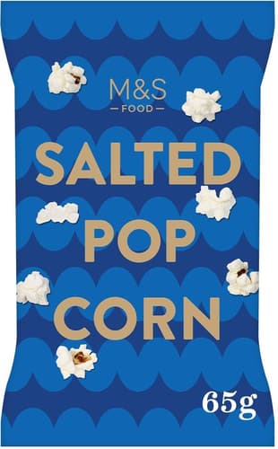 Hotový solený popcorn značky Marks & Spencer. Každé zrníčko kukuřice je čerstvě připravené, lehké a nadýchané, jemně dochucené správným množstvím soli, které podtrhuje jeho přirozenou chuť.