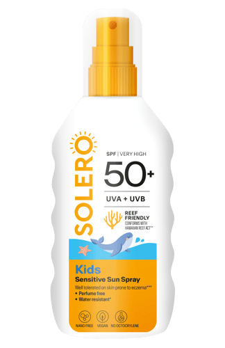 SOLERO Sprej na opalování SENSITIVE pro děti SPF 50+ je voděodolný sprej, který poskytuje velmi vysokou ochranu jemné pokožce dětí. Vhodný i pro pokožku se sklony k projevům sluneční alergie, Mallorca akné nebo ekzému. Benefity: Velmi vysoká ochrana. 24hodinová hydratace. Rychle se vstřebává, nemastí pokožku. Bez parfemace, bez oktokrylenu. Reef friendly. Všechny produkty Solero jsou dermatologicky testovány. Neobsahují žádné nanočástice a živočišné složky, takže jsou ideální volbou i pro vegany. Solero klade důraz na životní prostředí, a proto je obal vyroben min. ze 30 % recyklovaného plastu. Neobsahují syntetické UV filtry oxybenzon a oktikoxát – jsou v souladu s Havajským zákonem o ochraně korálů. Balení obsahuje 200 ml.
