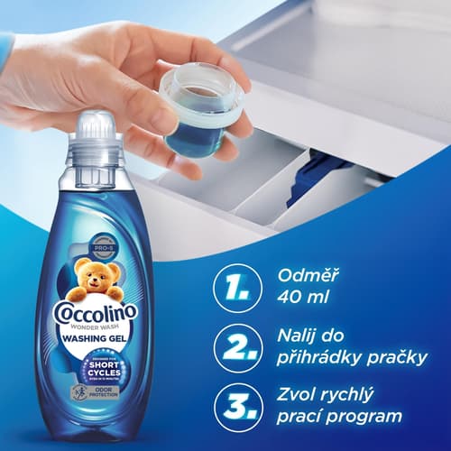 Velká Británie,Objevte revoluci v praní s Coccolino Wonder Wash. První prací gel vyvinutý pro rychlé prací programy přináší dokonale čisté a svěží prádlo už za 15 minut. Díky PRO-S technologii odstraňuje i okem neviditelné nečistoty a zápach. Varianta Odor Protection se zaměřuje na účinné odstranění nepříjemných pachů a je ideální pro každodenní praní i sportovní oblečení.