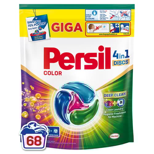 Persil Deep Clean 4v1 Discs Color kapsle na praní pro hloubkově čisté prádlo a hygienicky svěží pračku. Složení kapslí proniká hluboko do vláken vašeho oblečení a zanechá prádlo dokonale čisté, poté působí hluboko uvnitř mechanismu pračky a odstraní nečistoty, které mohou způsobovat nepříjemný zápach. Nové kompaktované prací kapsle zajišťují vynikající čisticí účinek s menším dopadem na životní prostředí díky nižší spotřebě materiálu.