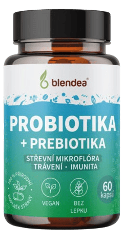 Doplněk stravy. Blendea Probiotika + Prebiotika je doplněk stravy, který kombinuje probiotické bakterie Bacillus coagulans s prebiotikem ve formě polysacharidu galaktomannanu. Každá veganská kapsle obsahuje 2 miliardy termostabilních spór, které jsou odolné vůči teplotě i žaludečním kyselinám. Přežijí cestu horním trávícím traktem a dostanou se bezpečně do střev. Jsou ideální volbou při užívání antibiotik nebo na cesty. Produkt je 100% přírodní, vhodný pro vegany a neobsahuje lepek. Nepřekračujte doporučené denní dávkování. Uchovávejte mimo dosah dětí. Doplňky stravy nejsou náhradou pestré a vyvážené stravy. Balení obsahuje 60 kapslí. Hmotnost obsahu: 32,2 g.