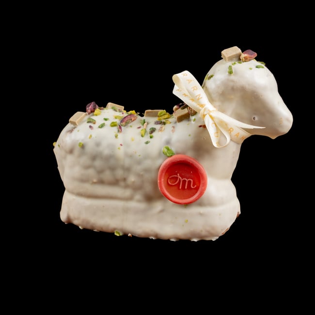 Česká republika,Tradiční velikonoční beránek ručně připravený v cukrárně Myšák z třeného těsta ze smetany a čerstvých vajec. Uvnitř ukrývá 100% pistáciovou pastu ze sicilských pistácií Bronte, která mu dodává nezaměnitelnou chuť. Povrch je polévaný bílou čokoládou Valrhona a zdobený křupavými sekanými pistáciemi a kousky nugátu.