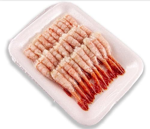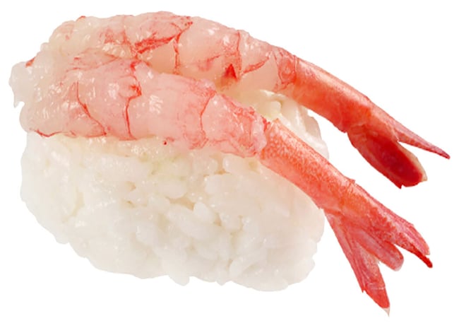 Topping z krevet na sushi. Krevety severní jsou s ocáskem, loupané a zamrazené. Jsou tedy vhodné ke konzumaci po rozmrazení.