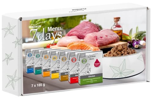 Platinum Natural 7Days Menu paštiky pro psy box (7×185 g)0,945 kgTento produkt již není v nabídce.Země původu: dle aktuální nabídkypro přesnou informaci kontaktujte zákaznickou podporu