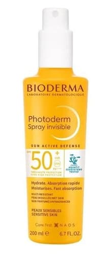 Bioderma Photoderm sprej s ochranným faktorem SPF50+ a ultra-lehkou texturou je určen i pro tu nejcitlivější a intolerantní pokožku. Díky nejvyspělejší ochraně SUN ACTIVE DEFENSE s posíleným účinkem proti UVA záření posiluje přirozenou obranyschopnost pokožky proti slunci, a zaručuje tak maximální ochranu. Je lehce roztíratelný, nezanechává bílé stopy ani mastný film. BENEFITY: Ultra-lehká textura s lehkým roztíráním, bezbarvý při aplikaci, nezanechává bílé stopy ani mastný film. Aplikace na suchou i mokrou pokožku, 8 hod. hydratace pokožky Multi-odolný (voda, pot, vysoká vlhkost), lehká parfemace. PATENTY A AKTIVNÍ LÁTKY: SUN ACTIVE DEFENSE: nejvyspělejší sluneční ochrana s posíleným účinkem proti UVA: • Fyzikální ochrana – chemické filtry UVA/UVB • Patentovaná biologická ochrana – ektoin + mannitol. Tato kombinace posiluje přirozenou obranyschopnost pokožky proti slunci a pomáhá zachovat dlouhodobou péči o zdraví pokožky vystavené slunci. Patentovaný DAF komplex zvyšuje toleranci i té nejcitlivější pokožky. Pro dospělé a děti starší než 12 měsíců. Balení obsahuje 200 ml.