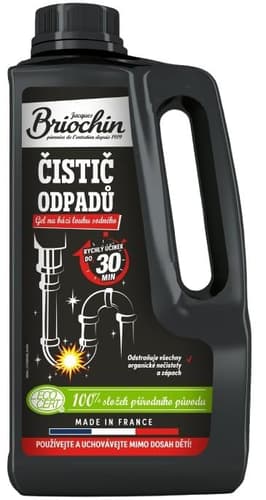 Čistič odpadů je silný přírodní gel, který rychle a efektivně uvolní ucpané odpady. Na bázi louhu sodného spolehlivě rozpouští zbytky jídla, mastnotu, mýdlo, vlasy, nehty i jiné organické usazeniny a odstraňuje nepříjemný zápach. Účinkuje již během 30 minut a je vhodný i pro použití v domácnostech se septiky.
