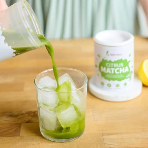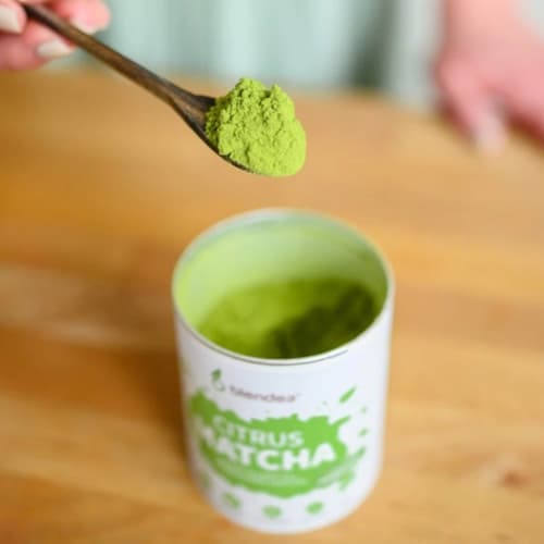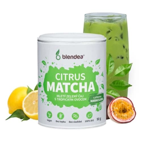 Doplněk stravy. Blendea Citrus Matcha je zelený čaj v BIO kvalitě obohacený o citronovou šťávu a maracuju, které mu dodávají svěží a osvěžující chuť. Jemný prášek vzniká mletím celých listů zeleného čaje, díky čemuž si uchovává více antioxidantů než klasický zelený čaj. Vysoký obsah antioxidantů chrání buňky před předčasným stárnutím. Produkt je vhodný pro vegany, neobsahuje lepek ani žádná sladidla. Nepřekračujte doporučené denní dávkování. Uchovávejte mimo dosah dětí. Doplňky stravy nejsou náhradou pestré a vyvážené stravy. Balení obsahuje 90 g (= 30 porcí).