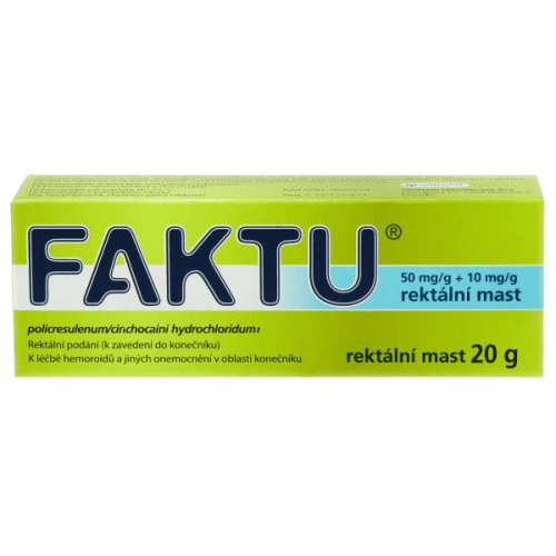 Faktu mast se používá k místní léčbě vnějších a vnitřních hemoroidů. Přípravek Faktu se dále používá při vyrážkách a svědění v oblasti konečníku a u povrchních trhlin v oblasti řitního otvoru. Přípravek Faktu rychle zastavuje krvácení, svědění a pálení při hemoroidech a dalších obtížích v oblasti konečníku. Zabraňuje vzniku zánětu a podporuje regeneraci postižné oblasti. Léčivou látkou přípravku Faktu mast je polykresulen a cinchokain. Cinchokain způsobuje místní znecitlivění, čímž snižuje bolest a svědění v oblasti konečníku. Faktu je určen pro dospělé. Pouze na doporučení lékaře se přípravek Faktu používá při léčbě ran po předchozím chirurgickém zákroku v oblasti konečníku. Balení obsahuje 20 g masti.