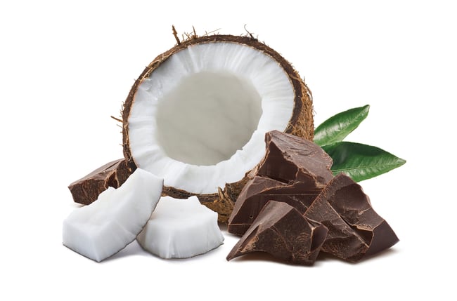 sušené datle (65%), strouhaný kokos (18%), jádra kešu ořechů, pražená mandlová drť, čokoláda (5%), [sladidlo: maltitol, kakaová hmota, emulgátor: lecitiny (ze sóji), kakaový prášek se sníženým obsahem tuku, přírodní vanilkové aroma], přírodní aroma
