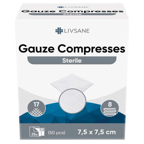 LIVSANE Sterilní gázové kompresy 7.5x7.5cm 25x2ks