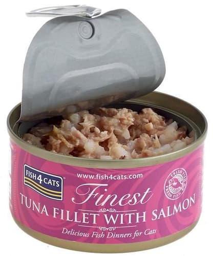 Konzerva Fish4Cats® Finest s tuňákem a lososem potěší i ty nejvybíravější kočičí jazýčky. Díky vysokému podílu čisté rybí svaloviny je přirozeně bohatá na omega-3 mastné kyseliny a poskytuje kvalitní, lehce stravitelné bílkoviny. Skvělá volba pro každodenní zpestření jídelníčku.