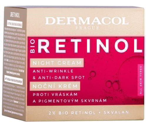 Dermacol noční krém s 2 % retinolu zmenšuje kožní póry, vyhlazuje reliéf pokožky a zklidňuje podráždění. Obsahuje komplex látek určených pro rejuvenaci pleti přes noc a působí, když vy spíte. Noční použití krému zajišťuje dlouhou dobu působení. Má intenzivní hydratační a revitalizační efekt, poskytuje maximální noční hydrataci a eliminuje nepříjemný pocit napjaté pokožky. Navrací pleti rovnováhu, posiluje ochrannou kožní bariéru a účinně bojuje proti pigmentovým skvrnám.