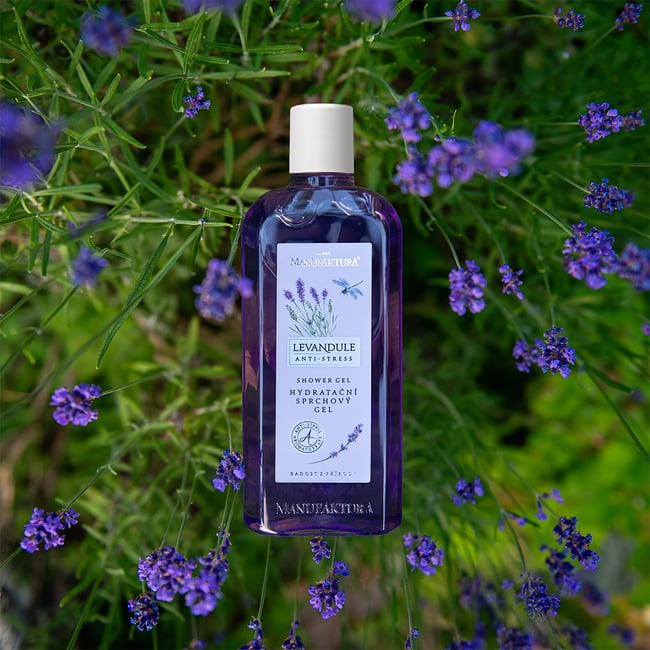 Objevte kouzlo aromaterapie díky sprchovému gelu Manufaktura Levandule. Sprchový gel bez parabenů s karlovarskou vřídelní solí napomůže celkové relaxaci, podpoří spánek, něžně umyje, zklidní pokožku a dodá jí potřebnou hydrataci. Nostalgická bylinná vůně obsahuje 100% přírodní levandulový esenciální olej, který provoní celé tělo a uvolní všechny smysly.