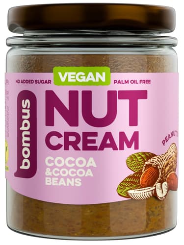 Ochucený arašídový krém s kakaem se sníženým obsahem tuku a kakaovými nibsy. Neobsahuje žádný přidaný cukr, mléko ani palmový tuk.