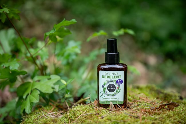 Vysoce účinný bylinný repelent Leros s přírodní aktivní látkou Citrepel® (certifikovanou organizací Ecocert), eukalyptem a levandulí, který poskytuje ochranu proti komárům a klíšťatům.