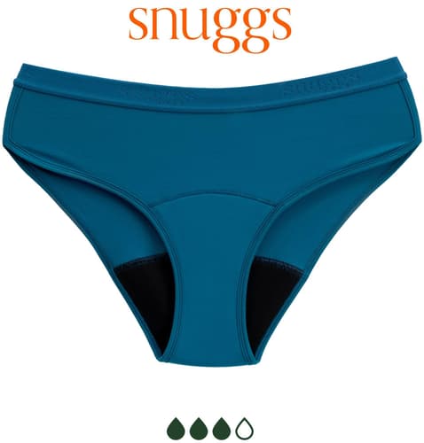 Menstruační kalhotky Snuggs Active ve velikosti M jsou ekologickou náhradou za vložky a tampóny. Jsou velice pohodlné, srovnatelné s klasickými kalhotkami, vypratelné a znovupoužitelné.
