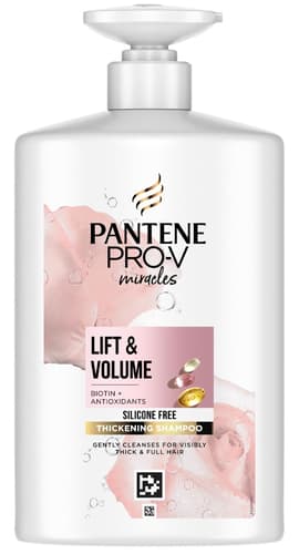 Pantene Pro-V Miracles Lift'N'Volume je šampon speciálně vyvinutý pro jemné, zplihlé vlasy bez objemu. Jeho složení bez silikonů kombinuje biotin, antioxidanty a nejvyšší koncentraci Pro-V, která posiluje vlasy, zvyšuje jejich odolnost a dodává jim viditelný objem už po prvním použití. Vhodný pro každodenní péči.