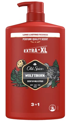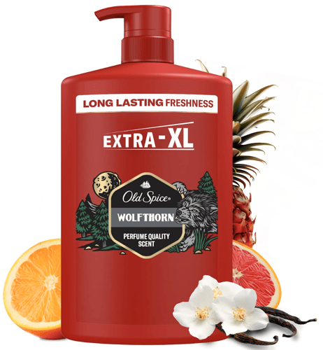Old Spice Wolfthorn je sprchový gel a šampon pro všechny, kteří se nebojí odhalit své divoké já. Toto složení 3 v 1 pro univerzální použití na vlasy, obličej i tělo zanechá na pokožce pocit příjemné hebkosti. Díky dlouhotrvající svěžesti a vůni parfémové kvality ochrání před špínou i potem. Vůně citrusů, tropického ovoce, mandarinky a špetky vanilky dodá sebevědomí, ať jste kdekoliv.