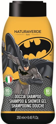 Hrdinská očista s osvěžující silou – šampon a sprchový gel Batman Naturaverde. Oblíbený sprchový gel a šampon v jednom potěší nejen fanoušky Batmana, ale i rodiče, kteří hledají šetrnou a funkční péči pro děti. Obsahuje organický extrakt ze zeleného čaje, který hydratuje, zklidňuje a chrání dětskou pokožku před vnějšími vlivy. S jemným složením bez parabenů a agresivních látek a s designem, který z každého koupání udělá akční zážitek.