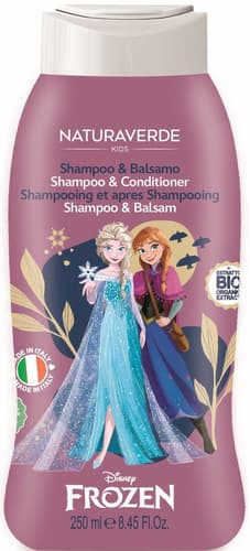 Proměňte mytí vlasů v kouzelný rituál s Naturaverde Frozen II šamponem a kondicionérem. Jemná formule s BIO extraktem chrpy šetrně čistí vlasy i pokožku hlavy, zklidňuje a usnadňuje rozčesávání. Kombinace šamponu a kondicionéru v jednom zanechává vlasy hebké, lesklé a provoněné bílým pižmem, které dodá každému mytí jemnou, pohádkovou atmosféru. Design inspirovaný Ledovým královstvím zase potěší malé fanoušky Elsy i Anny.