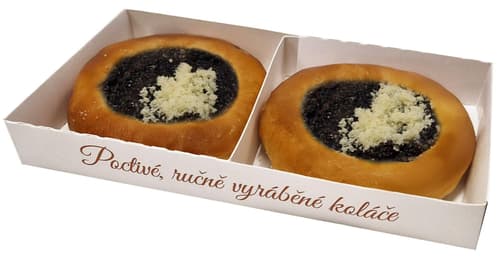 Ručně vyráběné tlačené koláče z kynutého těsta s makovou náplní a žmolenkou na povrchu. Zabalením si koláče udrží vláčnost po celou dobu trvanlivosti.