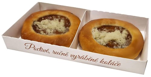 Ručně vyráběné tlačené koláče z kynutého těsta s meruňkovou náplní a kousky meruněk. Podíl ovoce v meruňkové náplni je 60 %. Zabalením si koláče udrží vláčnost po celou dobu trvanlivosti.