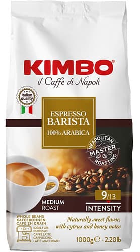 Kimbo Espresso Barista je jemná směs 100% Arabiky pražená podle neapolské tradice. Tato prémiová kávová zrna nabízejí intenzivní, ale vyvážené aroma s jemnými tóny pražených ořechů, karamelu a nádechem čokolády. Středně až tmavě pražená káva poskytuje plné tělo a sametovou cremu.