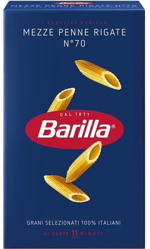 Mezze Penne Rigate jsou kratší verzí klasických penne s charakteristickým diagonálním řezem a jemným rýhováním po povrchu. Díky své velikosti a struktuře skvěle zachytávají omáčku. Těstoviny Barilla jsou vyrobeny z kvalitní semolinové mouky z tvrdozrnné pšenice, bez přídavku vajec či umělých složek. Těstoviny jsou vyráběny s respektem k italskému řemeslu, s důrazem na jednoduchost a čistotu surovin.