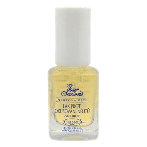 Four Seasons lak proti okusování nehtů je inovativní řešení pro ty, kteří bojují s kousáním nehtů a kůžiček. Tento lak nejenže odrazuje od tohoto zlozvyku díky své hořké chuti, ale také posiluje strukturu nehtů a podporuje jejich zdravý růst. Je vhodný pro ženy i muže, kteří hledají dlouhotrvající ochranu a péči o své nehty. Díky obsahu extraktu z pomerančové kůry poskytuje přírodní péči a ochranu. Vlastnosti: Dlouhotrvající účinek pro maximální ochranu. Vytváří průhlednou vrstvu, která chrání nehty před UV zářením. Tento lak na nehty je ideální volbou pro ty, kteří chtějí nejen odradit od kousání nehtů, ale také posílit a chránit své nehty před vnějšími vlivy. Jeho složení zajišťuje dlouhotrvající účinky a přirozenou péči, což z něj činí nepostradatelnou součást vaší kosmetické rutiny. Balení obsahuje 12 ml.