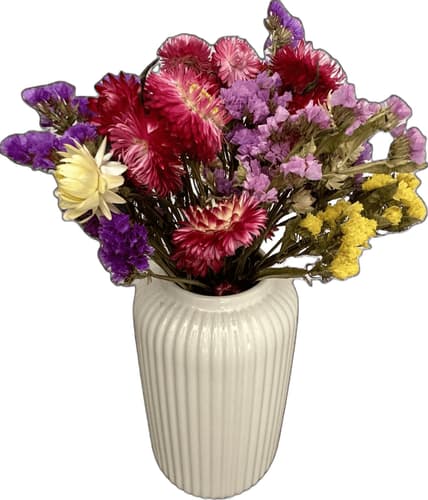 Jedná se o menší BIO kytici ze slaměnek a statice v zimních barvách doplněnou o další sušené květiny. Květiny jsou sušeny ve vlastní kondenzační sušárně, díky které si zachovávají svěžest a syté barvy. Květina Vám vydrží dělat radost několik měsíců.