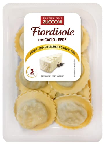 Čerstvé vaječné těstoviny s náplní značky Zucconi. Tradiční italské těstoviny jsou připravené ve stylu cacio e pepe – jednoduché, ale výrazné spojení kvalitního sýra a čerstvě mletého pepře. Vychází z římské kuchyně a představují dokonalou rovnováhu krémové konzistence a pikantnosti.