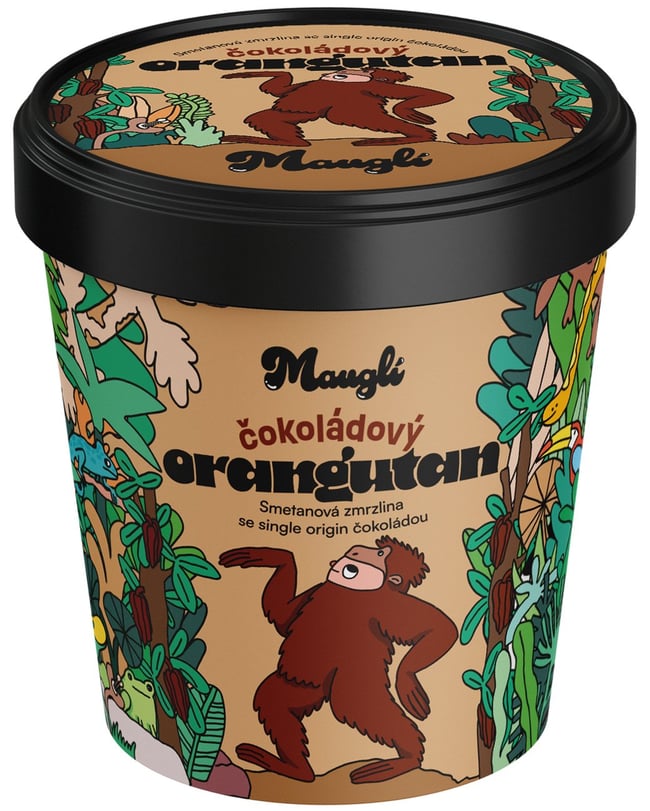 Tenhle Orangutan si potrpí na kvalitu. Miluje čokoládu, ale né jentak ledajakou. Tohle je mléčná čokoláda Single origin Peru Cru Pachiza 39%. Mňam! Tahle čokoládová zmrzlina se okamžitě stala hitem každého pralesa. Pohodlně se usaďte a pochutnejte si na úžasné mléčné čokoládě.