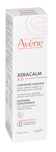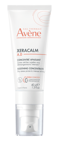 AVENE XeraCalm A.D Zklidňující koncentrovaná péče je speciálně vyvinutý přípravek určený pro suchou, podrážděnou pokožku se sklonem k intenzivnímu svědění a atopickému ekzému. Díky svému složení poskytuje okamžitou úlevu od svědění a zklidňuje citlivou pokožku. Obsahuje postbiotickou aktivní látku I-modulia®, získanou z termální vody Avène, která pomáhá zmírnit podráždění a zarudnutí. Cer-omega, vysoce koncentrovaný ochranný a obnovující komplex, přispívá k regeneraci kožní bariéry a zajišťuje potřebnou výživu a hydrataci. Přípravek je vhodný k použití na obličej, oční víčka i celé tělo. Může být používán u kojenců, dětí i dospělých. Je uznáván dermatology Evropského dermatologického fóra jako Emollient PLUS – tedy doplňková péče pro suchou pleť se sklonem k atopickému ekzému. XeraCalm A.D Zklidňující koncentrovaná péče je balena v hermeticky uzavřeném obalu, který zajišťuje sterilitu a bezpečnost použití. Neobsahuje konzervanty ani parfemaci, je nekomedogenní a minimalizuje riziko vzniku alergických reakcí. Balení obsahuje 40 ml.