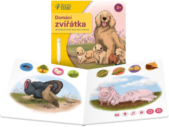 - Kniha Domácí zvířátka obsahuje přes 300 zvuků a text.