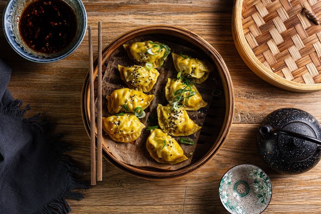 Asijská restaurace Dim Sum Spot si pro vás připravila asijské kuřecí knedlíčky.