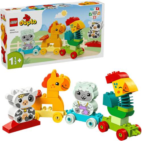 Představte dětem od 18 měsíců stavebnici LEGO® DUPLO® Můj první vláček se zvířátky, se kterou si procvičí přiřazování barev. Součástí této vzdělávací hračky pro nejmenší jsou čtyři rozkošné modely zvířátek – kohout, koník, jehňátko a kravička – se kterými děti čeká cesta plná zábavného hraní. Malí stavitelé si procvičí schopnost řešit problémy při stavění zvířat podle kartiček a při přiřazování zvířat ke stejnobarevným vagonkům. Nechybí ani dvě kostky navíc, které batolatům umožňují projevit kreativitu a vytvořit zvířecí figurky podle vlastní fantazie.