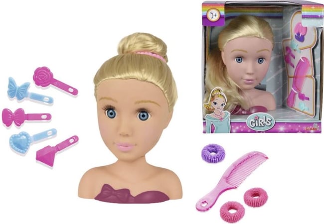 Simba česací hlava s příslušenstvím je ideální hračka pro malé kadeřnice a stylistky. Díky dlouhým vlasům a bohatému příslušenství si děti mohou zkoušet různé účesy, copánky a zdobení.