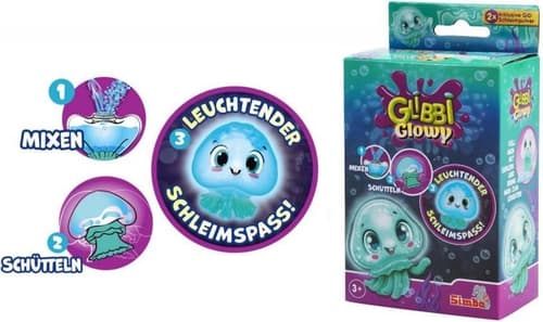 Medúza s vyjímatelným slizem, který lze nasvítit pod lampou pro svícení ve tmě. Po skončení hraní sliz můžete bezpečně uložit zpět do medúzy. Díky absenci konzervačních látek a umělých dráždidel je Glibbi Slime naprosto dermatologicky bezpečný.