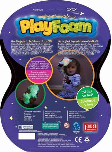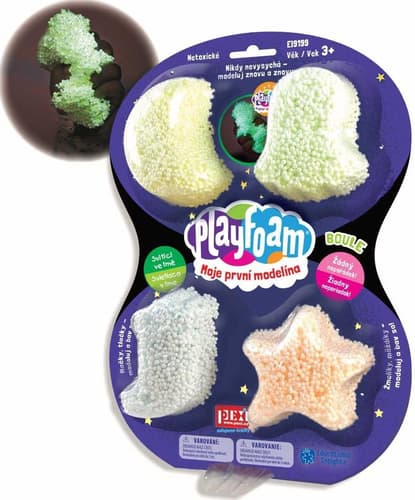 Balení se čtyřmi barvami fosforeskující modelíny zářící ve tmě. PlayFoam je moderní modelovací hmota, která nevysychá, nešpiní ruce, nelepí se na hladké povrchy a je lehká jako pírko. S modelínou vytvoříte úžasné výtvory bez obav, že se po chvilce hraní rozpadne nebo že se bude lepit na ruce.