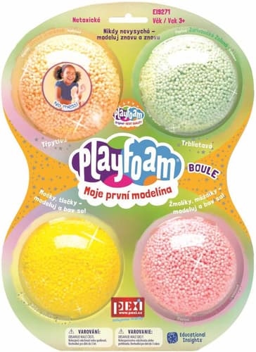 Balení se čtyřmi třpytivými barvami modelíny. PlayFoam je moderní modelovací hmota, která nevysychá, nešpiní ručičky, nelepí se na hladké povrchy a je lehoučká jako pírko. S modelínou vytvoříte úžasné výtvory bez obav, že se po chvilce hraní rozpadne nebo že se bude lepit na ruce.